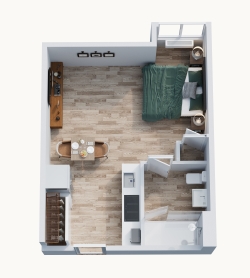 Our thoughtfully designed apartments and common spaces offer comfort, safety, and privacy. With round-the-clock staff, your loved one is always supported, whether they need help occasionally or throughout the day.