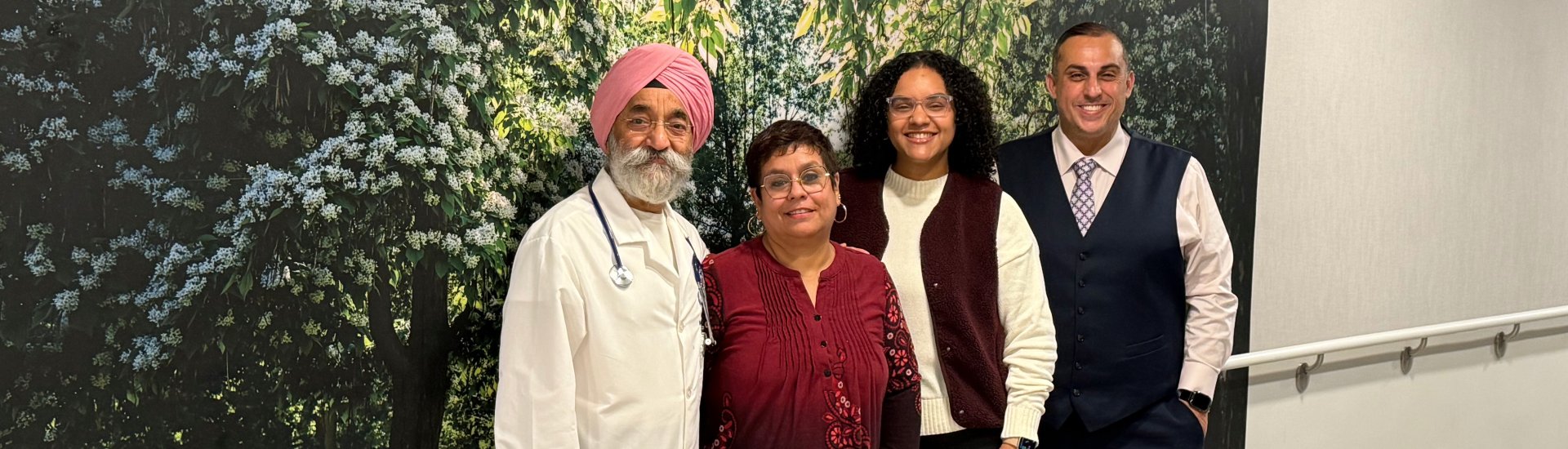 We’re located in a lovely residential area in Allendale, Bergen County, surrounded by many trees.